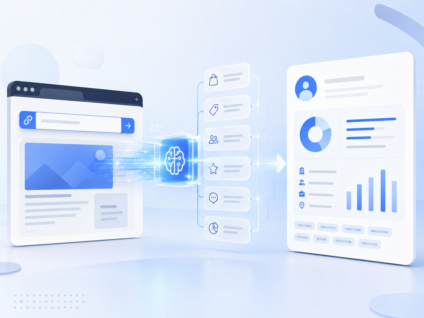 自社サービスの URL を貼るだけ。AI が内容を読み取ってお客様像を組み立てます